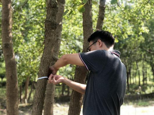 近期“秋老虎”發(fā)威,炎炎烈日、驕陽(yáng)似火,林中蚊蟲叮咬,地面起伏、時(shí)有溝壑。但沒有一個(gè)人叫苦喊累,認(rèn)真的用樹尺測(cè)量每一棵苗木,并詳細(xì)記錄。至太陽(yáng)西下,大家用腳丈量了500多畝田地,測(cè)量了10000余株苗木?!巴陜善诘拿缒颈P點(diǎn),我要盤四五天才能盤點(diǎn)完,現(xiàn)在有大家的幫忙,不到一天就完成了,工作效率大大提高了?!泵缙载?fù)責(zé)人高興地說。