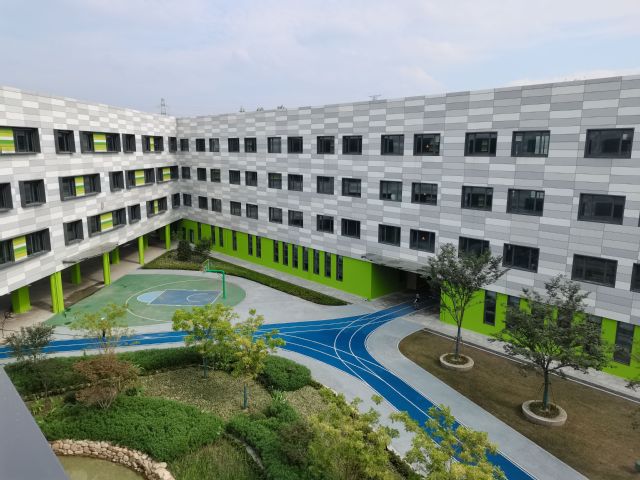 ——項目設(shè)計之初秉承給學(xué)生提供最大限度活動空間的理念,預(yù)留了較多的運動空間。設(shè)有4處室外籃球場,1個天然草坪足球場,以及6道300米塑膠跑道,并且是河西地區(qū)第一家采用藍(lán)色塑膠跑道的學(xué)校!