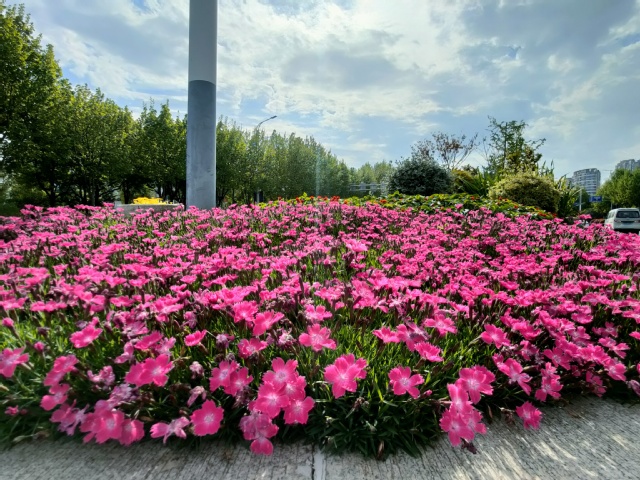 在草花品種上,除了選用一串紅、孔雀草、矮牽牛、繁星花等常規(guī)季節(jié)性、花期較長的品種外,還新增了毛地黃、垂吊牽牛、金葉雪茄花、超級海棠、歐石竹、常夏石竹、藿香薊等市民喜歡且生命力旺盛的草花品種。多顏色、多品種的搭配,達(dá)到了花色靚麗多彩、層次錯(cuò)落有致、春意盎然的景觀效果,提升了河西中部地區(qū)道路景觀品質(zhì),扮靚了河西新城。