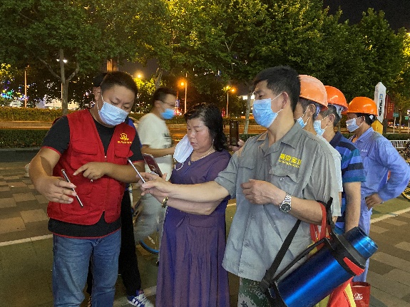進(jìn)入工作現(xiàn)場后,志愿者們迅速熟悉掌握工作要求,主動溝通協(xié)調(diào)、協(xié)助引導(dǎo)秩序、指導(dǎo)幫助登記掃碼、耐心解答疑問……大家分工明確、緊張有序地全力配合醫(yī)護(hù)人員開展核酸檢測工作,炎熱夏夜,蚊蟲叮咬,絲毫不影響大家的工作熱情,在大家的共同努力下,有效推進(jìn)了檢測速度,減少了市民等待時間,用實際行動為社區(qū)群眾筑起一道生命健康防線,也讓黨旗在疫情防控一線高高飄揚。(擬稿人:王慧、于桐、武照嬌)