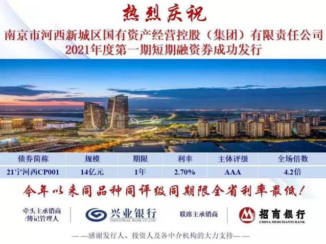 南京市河西新城區(qū)國有資產(chǎn)經(jīng)營控股(集團)有限責(zé)任公司(以下簡稱“河西集團”)成功發(fā)行2021年度第一期短期融資債券。