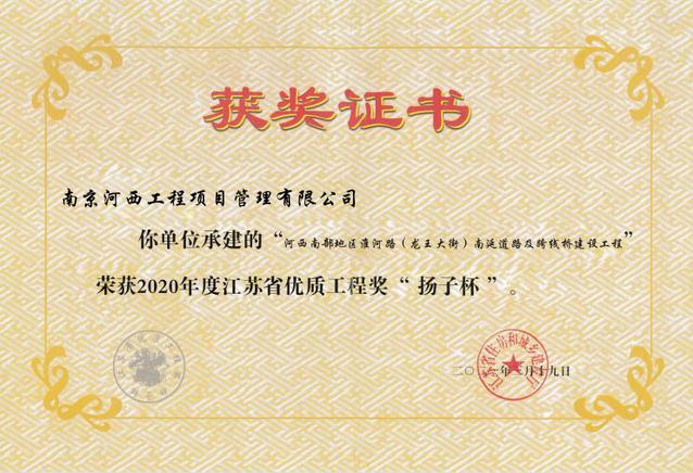 近日,江蘇省2020年度優(yōu)質(zhì)工程獎“揚(yáng)子杯”獲獎項目名單公布,河西集團(tuán)新城公司所屬南京河西工程項目管理有限公司代建的河西南部地區(qū)淮河路(龍王大街)南延道路及跨線橋建設(shè)工程榜上有名。