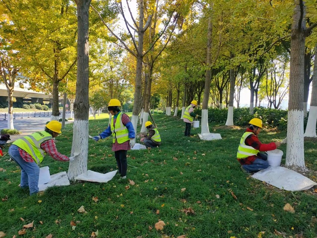 對樹木進行刷白是冬季園林綠化養(yǎng)護管理的一項重要工作,樹木刷白主要有兩個作用:一是防凍,用石灰漿涂白后可以降低樹干晝夜溫差,減輕樹木凍害;二是防止蟲害,石灰漿和硫磺等具有殺菌作用,可以有效地防止蟲害,為樹木來年萌發(fā)打基礎(chǔ)。