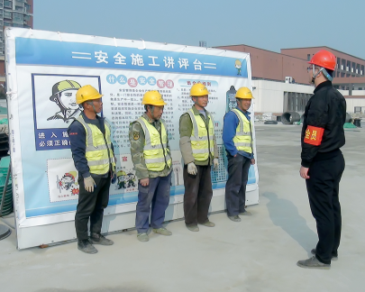 本工程施工范圍廣、涉及專業(yè)多,交叉施工影響大,安全文明管理難度高。為此項目部精心組織、科學(xué)策劃,從開展安全教育,提高全員安全意識著手,將安全教育工作常態(tài)化。并且嚴格實行工程安全技術(shù)交底制度、定期組織應(yīng)急演練、施工現(xiàn)場設(shè)置醒目的安全警示標志,時刻提醒工人安全生產(chǎn)、規(guī)范作業(yè)。