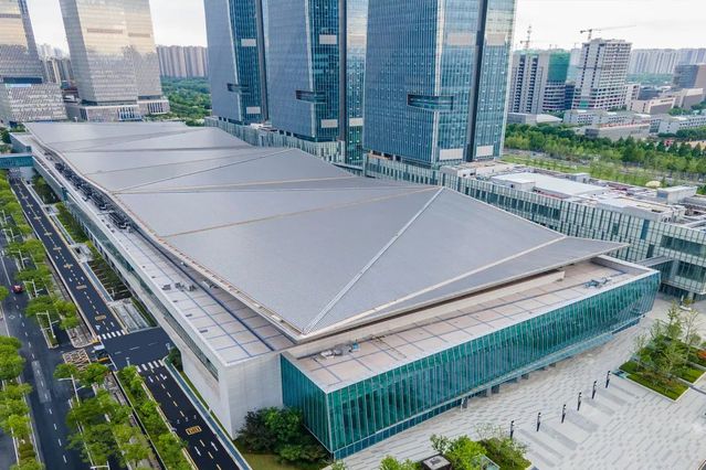 南京國際博覽中心三期1#樓及大地下室工程位于南京河西新城區(qū),北側(cè)緊鄰南京國際博覽中心一、二期展館,總建筑面積約21萬㎡,地上2層,建筑面積約7萬㎡,由展廳、商業(yè)、卸貨區(qū)等用房組成;地下2層,建筑面積約14.2萬㎡,為車庫、設(shè)備用房等。工程于2017年4月20日開工,2021年2月1日竣工。竣工后,河西集團所屬南京國際博覽中心一、二、三期場館延江東中路連成一片,以華東最大的會展中心展現(xiàn)在世人眼前。