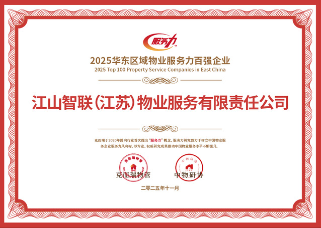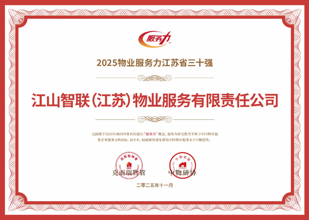 河西集團(tuán)江山智聯(lián)物業(yè)憑借卓越的服務(wù)品質(zhì)與前瞻的戰(zhàn)略布局,一舉斬獲2025南京國有物業(yè)服務(wù)力領(lǐng)先企業(yè)TOP1、2025江蘇省服務(wù)力市場運營領(lǐng)先企業(yè)TOP3、2025物業(yè)服務(wù)力南京十強、2025物業(yè)服務(wù)力江蘇省三十強、2025華東區(qū)域物業(yè)服務(wù)力百強企業(yè)、五項行業(yè)重磅榮譽。